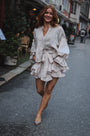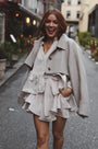 The Coco Skirt Shorts in soft, luminous fabric gives a luxurious and flirty look. It has hidden pockets, an elastic waistband, and a detachable belt for versatile styling.