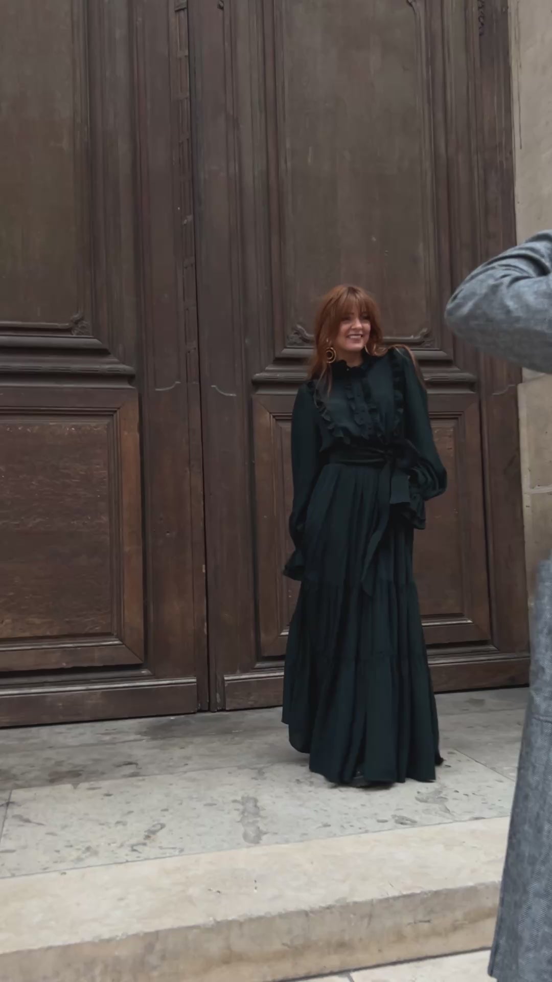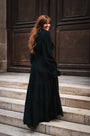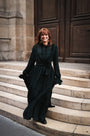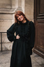 The Long Frill Dress is crafted from a heavy, luxurious viscose that drapes beautifully, giving it both structure and flow. Designed with an elastic waist and detachable belt for a flattering silhouette, it also features side pockets for ease and comfort. Frill detailing along the front and sleeves adds a feminine touch, while the button-down front allows you to wear it closed for polish or open as a subtle V-neck. A timeless maxi dress that moves gracefully from day to evening.