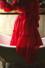A dreamy fusion of Nordic minimalism and the edgy touch of that spicy senorita vibe. The dress has a soft, feminine silhouette with delicate ruffle detailing, a comfortable elastic waistline, and a detachable belt for effortless styling. Thoughtfully designed for ease and movement, it includes discreet side pockets and a breezy voluminous skirt that drapes and flows perfectly. Elegant, playful and timeless. A true Confettibird treasure, limited edition.
